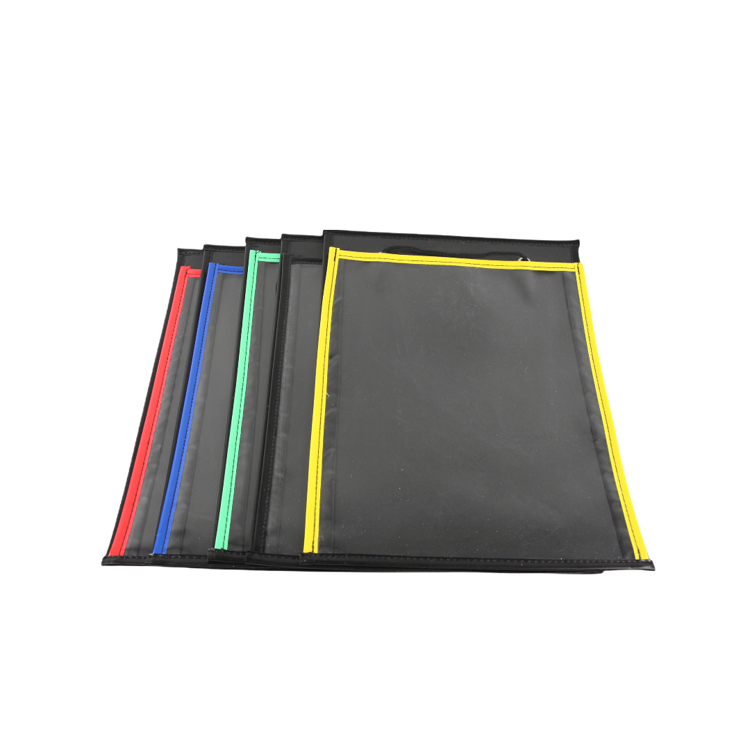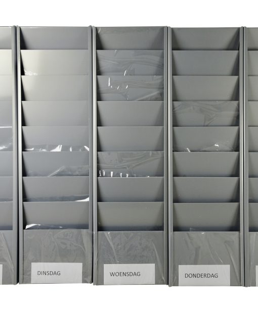 Naast de werkplaatsmappen en klemborden, die wij ook verkopen, kunt u natuurlijk ook de nodige documenten in een doorzichtige T tas/mapje of gewoon los in het planbord bewaren/plaatsen. U kunt meerdere werkplaatsmappen achter elkaar kwijt per vak.